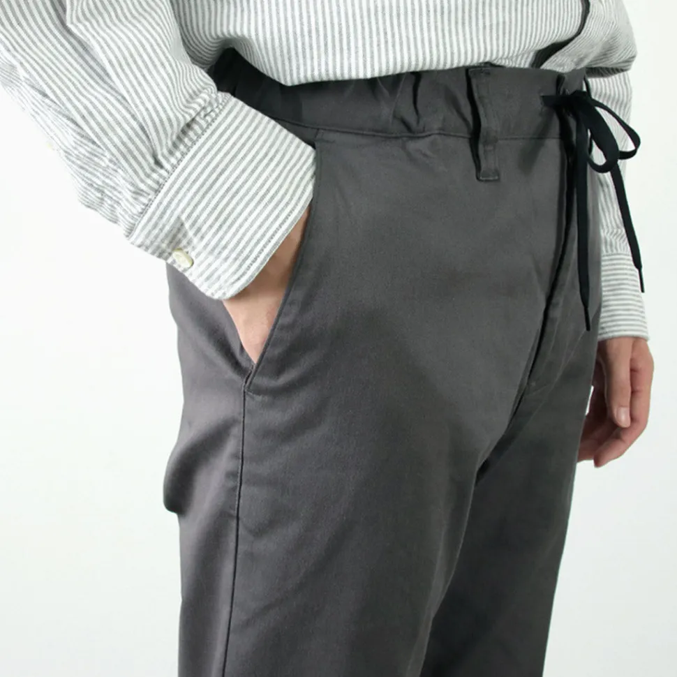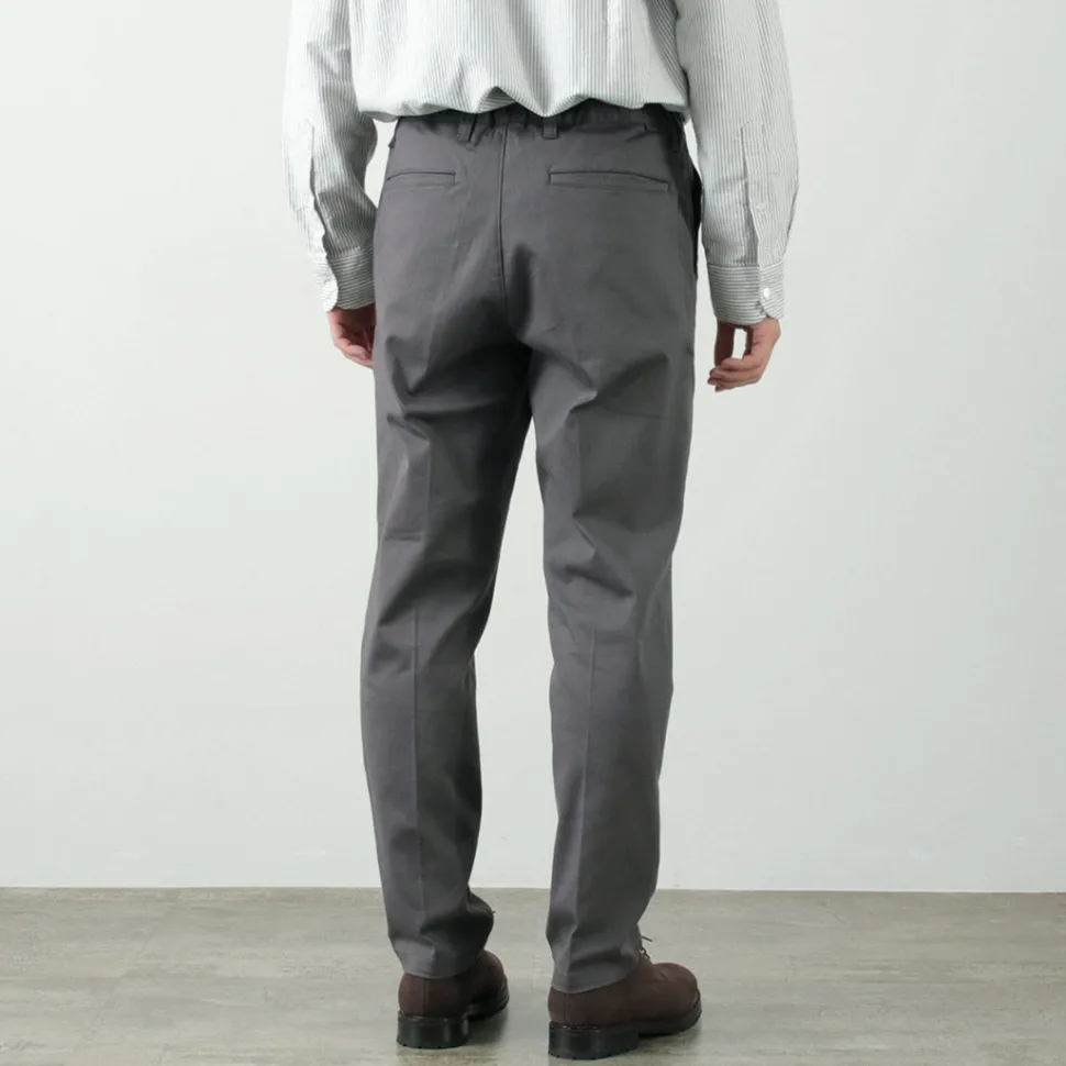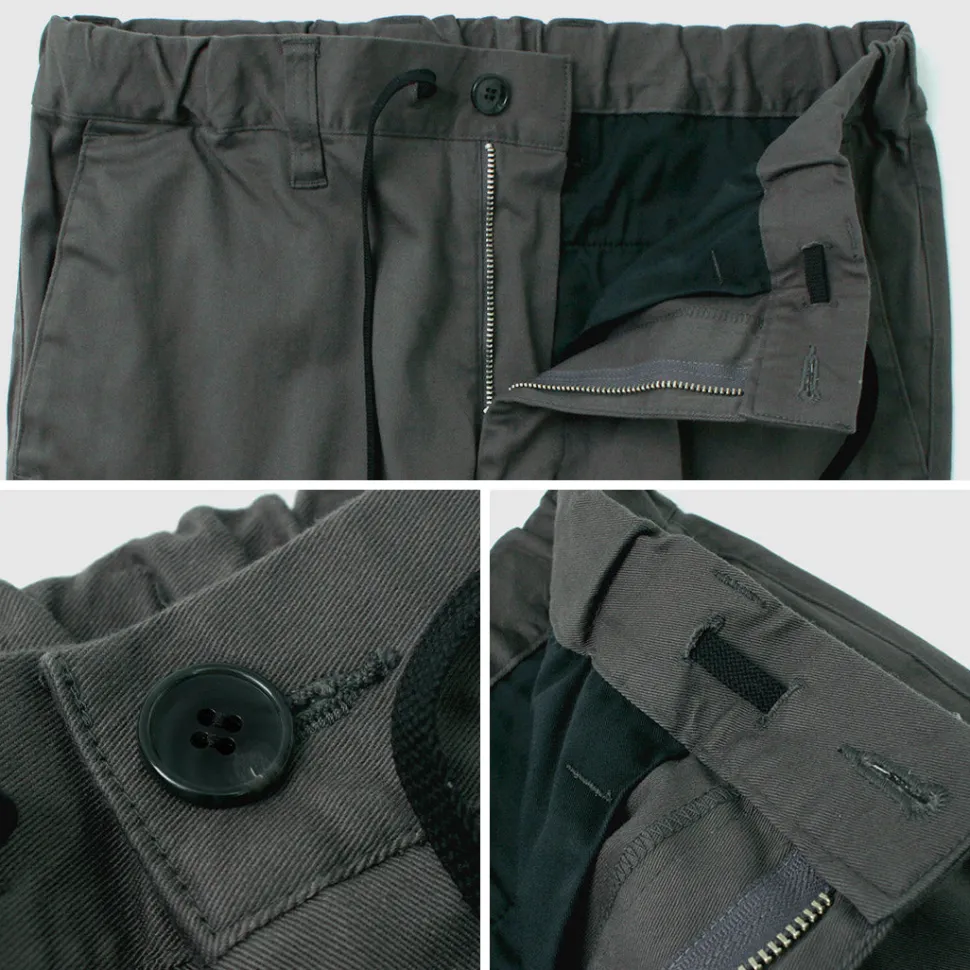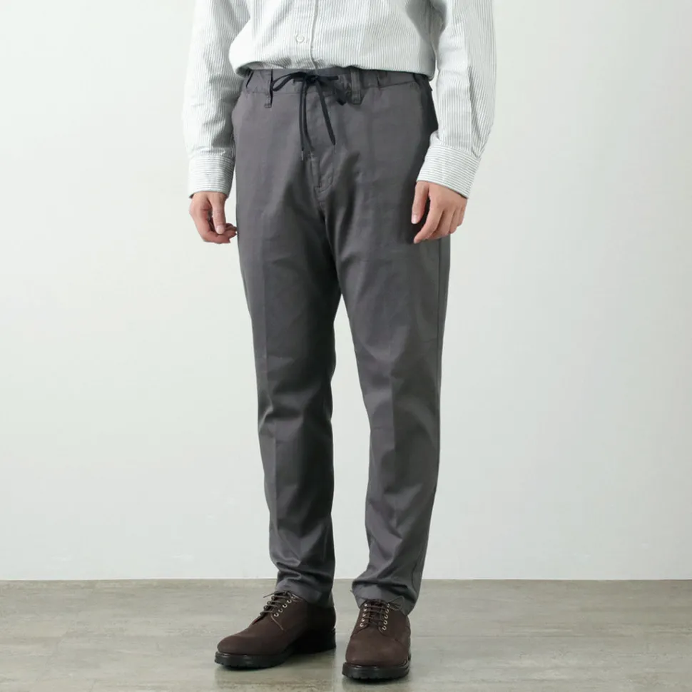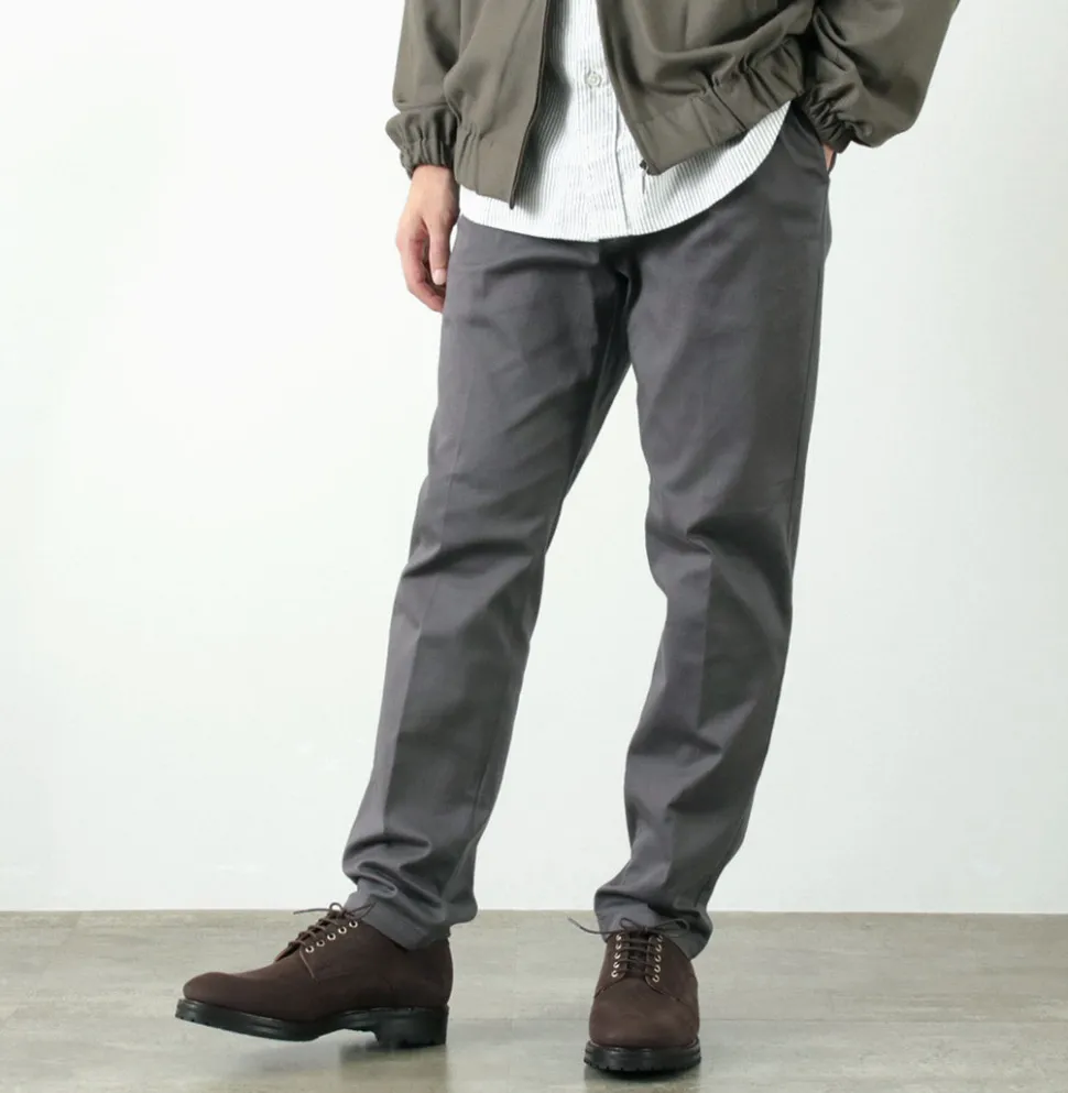 While being functional, the natural texture of cotton is attractive. With a clean tapered silhouette featuring a center press, it is also recommended for office casual wear.