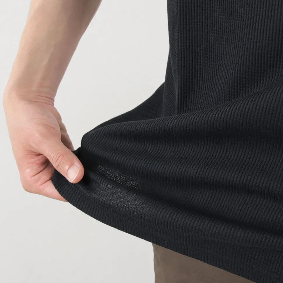 The active particles work to keep you cool when it’s hot and warm when it’s cold, keeping your body temperature comfortable. With its easy-to-use basic design and silhouette, this item can be used on its own or as an inner layer in a wide range of situations.