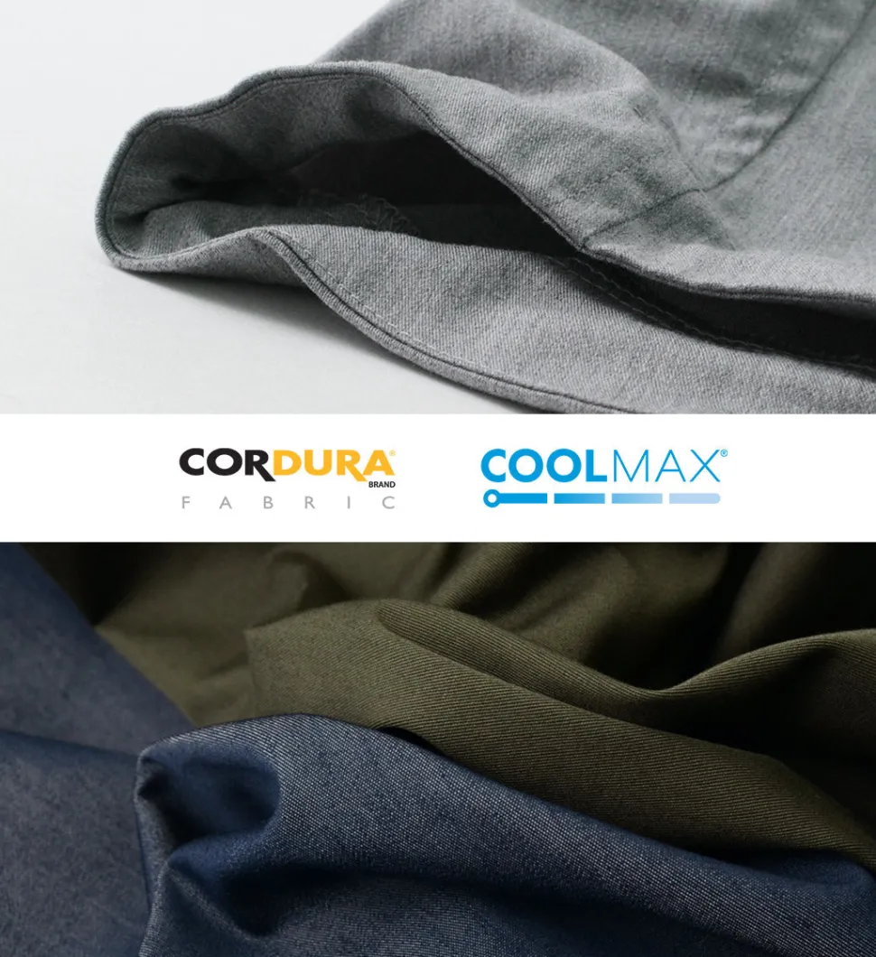 The fabric boasts three times the durability of regular cotton and is made of a blend of Cordura nylon, known for its high abrasion resistance, and COOLMAX. It’s not too thin or too thick, allowing it to be worn from spring to autumn.