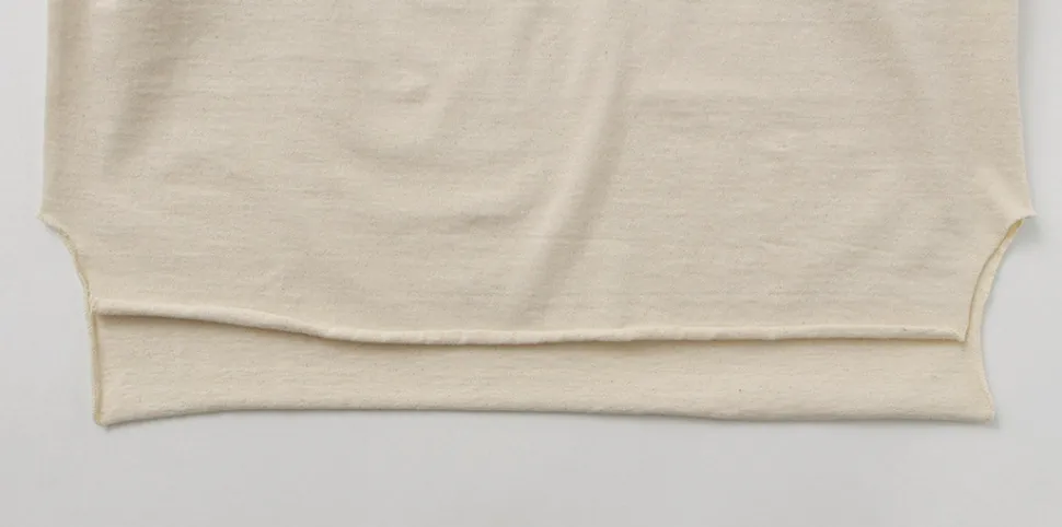 Adopting a classical Henley neckline commonly used in innerwear from the 1940s to the 1960s. It features shell buttons, showcasing attention to detail.