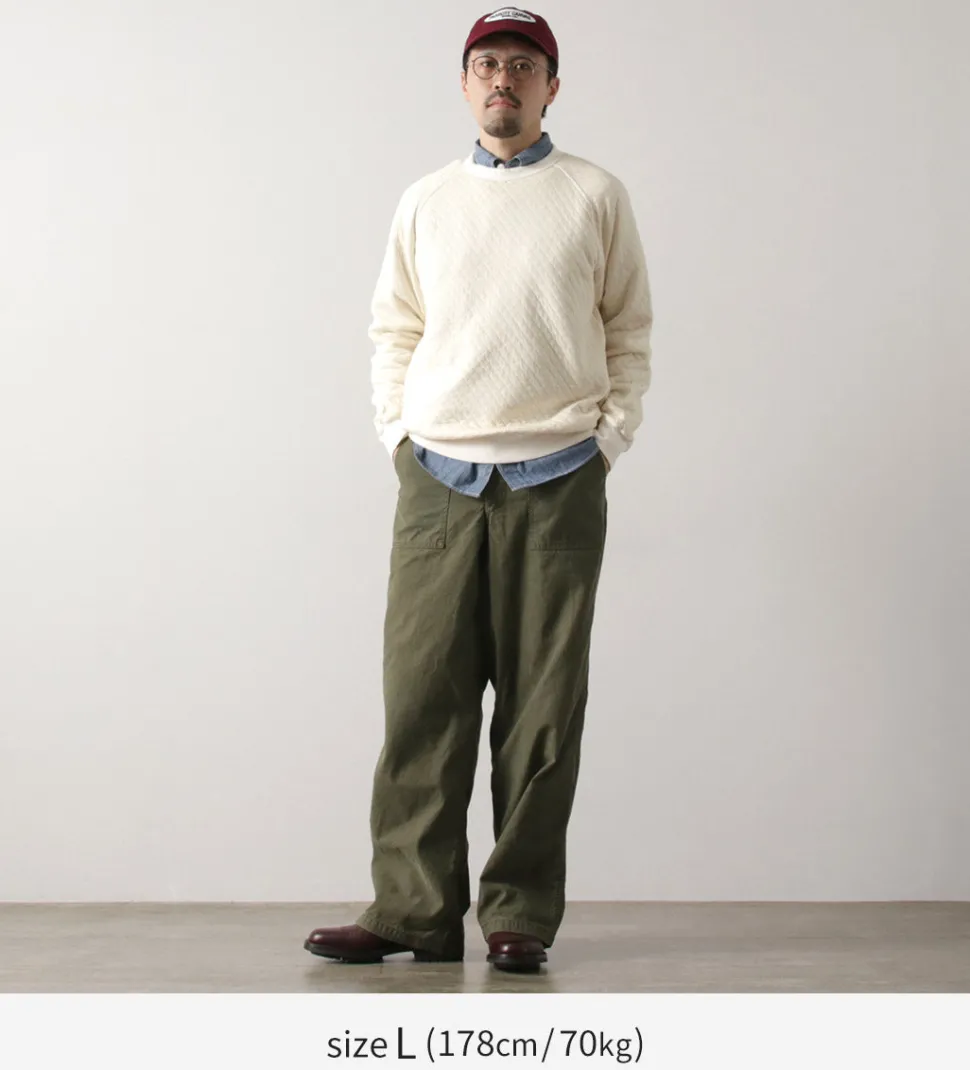 The pigment-dyeing process lends the fabric a distinctive vintage appearance. Over time, as the fabric wears and fades, it develops a unique character reminiscent of classic vintage garments.